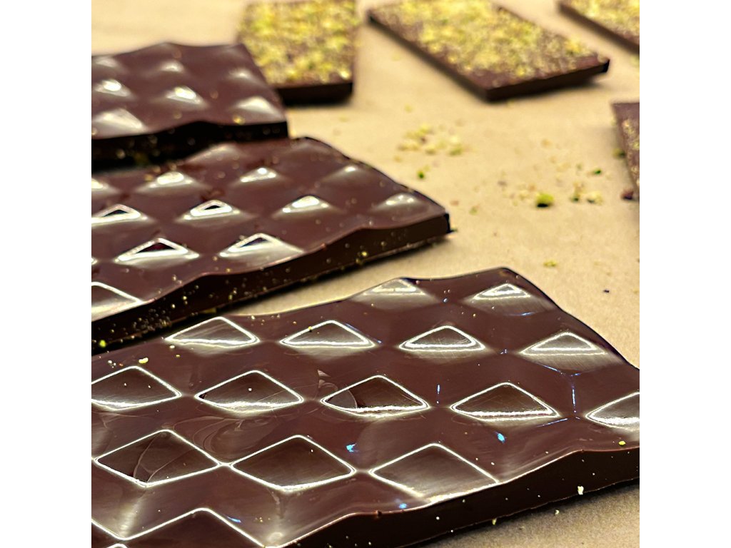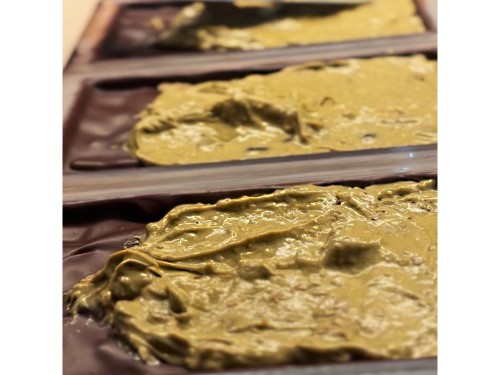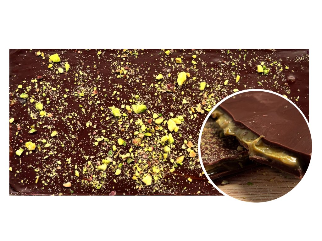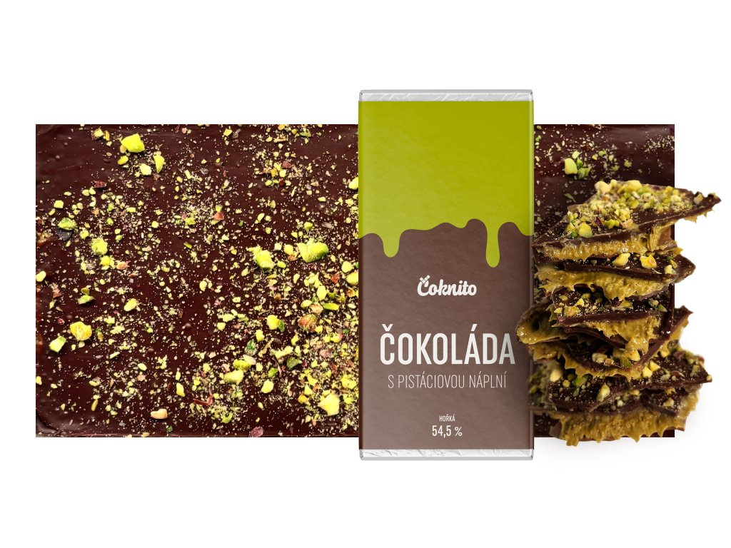Lehce křupavá pistáciová náplň v tenké vrstvě hořké čokolády. Každý kousek je plný intenzivní pistáciové chuti, která tě dostane. Vyzkoušej a uvidíš!
