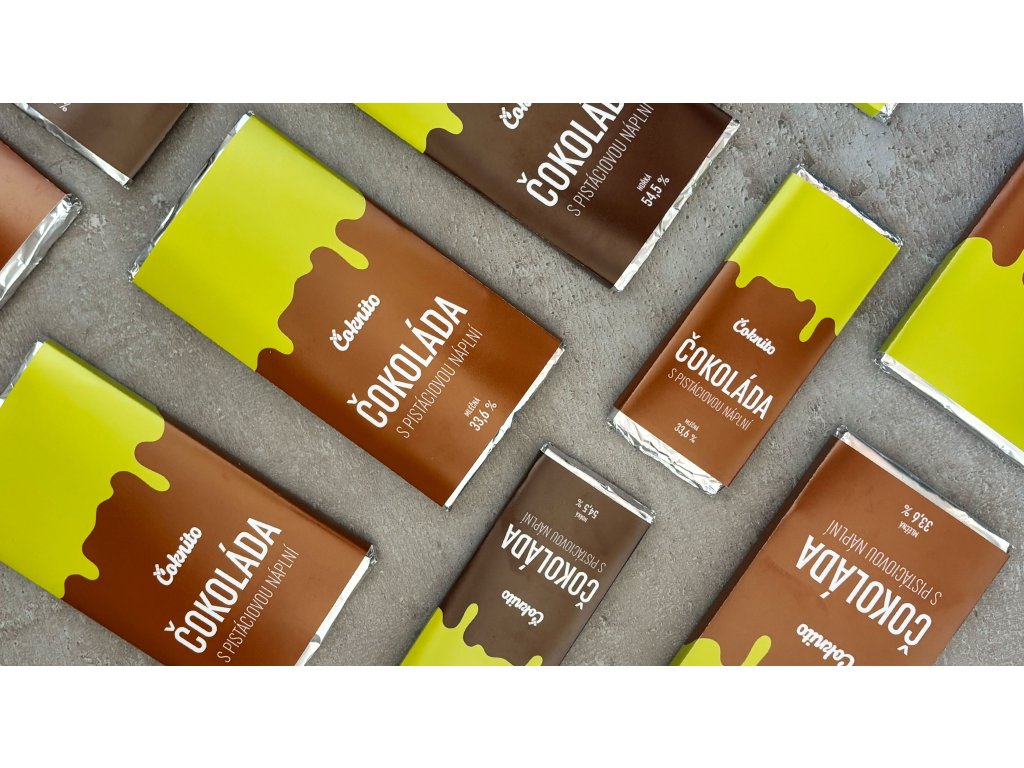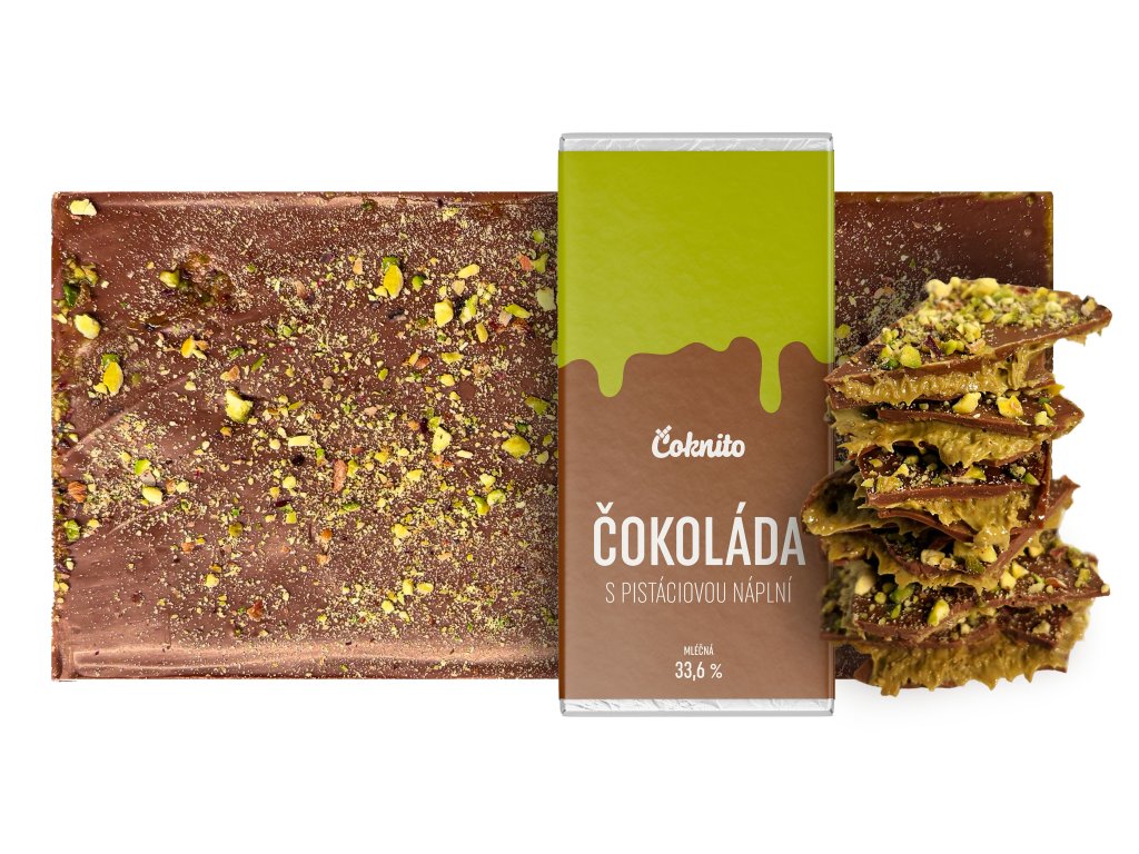 Mléčná čokoláda s pistáciovou náplní